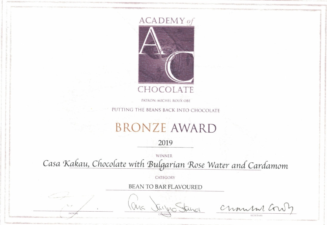 Тези принципи ни помогнаха да станем първият български производител на занаятчийски шоколад от какаови зърна с многобройни награди от конкурси и състезания във Великобритания, Дания, Нидерландия, Унгария и България. Днес продуктите ни достигат до Германия, Австрия, Полша, Румъния, Молдова, Дубай, САЩ, като същевременно не пропускаме редовно да изненадваме и българския пазар с нови продукти и услуги.