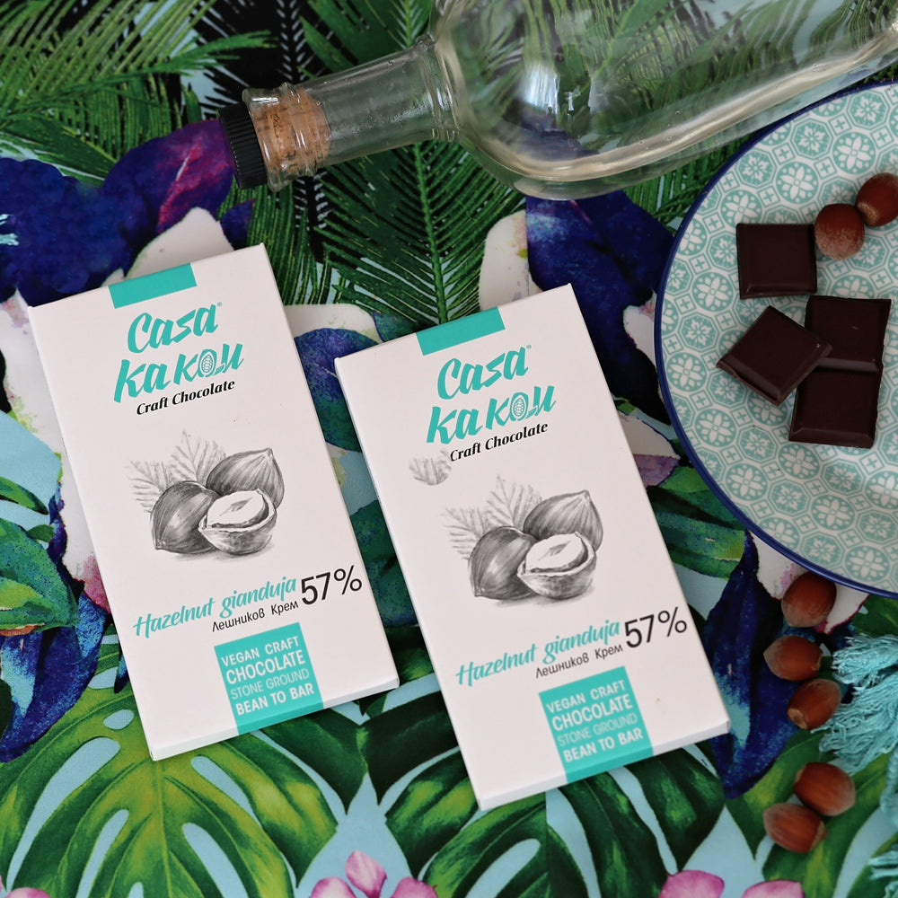 Какаовите зърна за нашите шоколади подбираме от малки ферми в Южна Америка. Към шоколада добавихме ароматни лешници за неустоимо и нежно усещане. Чудесно балансирана комбинация между флоралните ароматни нотки на шоколада с богатия аромат и плътен вкус на лешника.