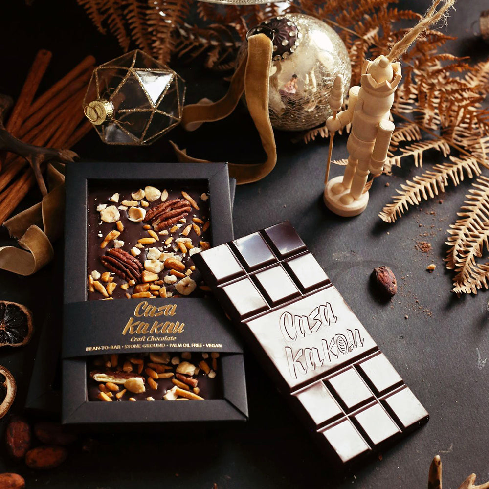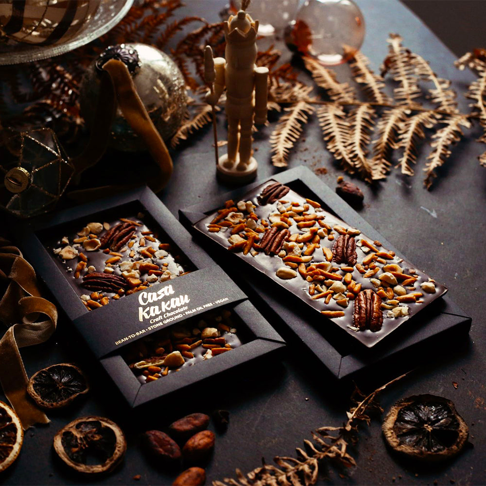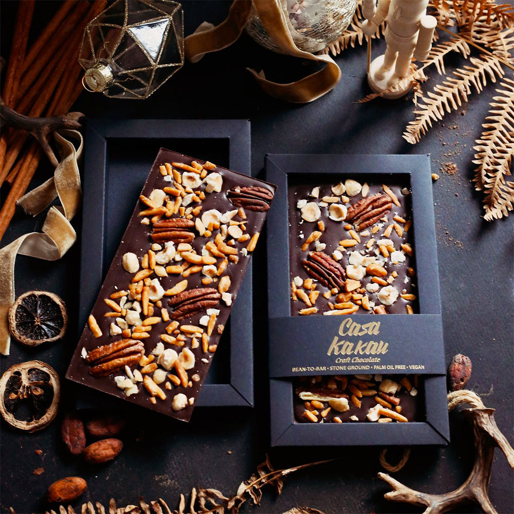 Пекан, лешник и карамелизиран бадем заедно в един шоколад за любителите на ядките.